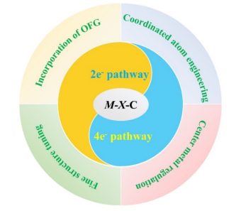 氧还原反应(ORR)是电化学核心催化反应之一,其过程可分为2电子和/或4电子转移路径,这些路径的优化与控制依赖于对中心金属M与配位原子X的精细调控。本综述首先深入阐述了两种电子转移机制的ORR反应机理,随后系统论述了M-X-C SACs催化剂设计与性能评估的关键策略与手段,围绕高性能M-X-C SACs在ORR路径调控研究的最新策略与进展,详细探讨了通过精确调控催化剂组成、结构以及界面效应,实现ORR路径的选择性优化,进而提升整体催化效率与产物选择性。最后,深入探讨了M-X-C基SACs在未来发展中所面临的挑战与机遇,展望了其在推动燃料电池商业化、提升金属-空气电池能量密度以及绿色高效生产H₂O₂等方面的应用前景。