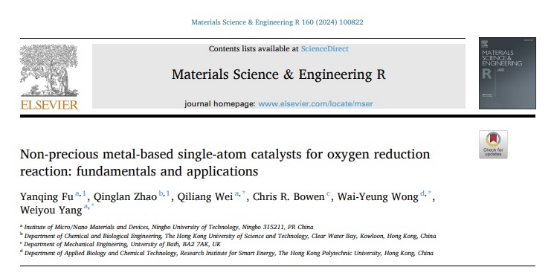 近日,团队在材料领域顶级期刊Materials Science and Engineering: R: Reports发表了题为“Non-precious metal-based single-atom catalysts for oxygen reduction reaction: fundamentals and applications”的综述论文(Mater. Sci. Eng. R, 2024, 160: 100822,https://www.sciencedirect.com/science/article/pii/S0927796X24000524)