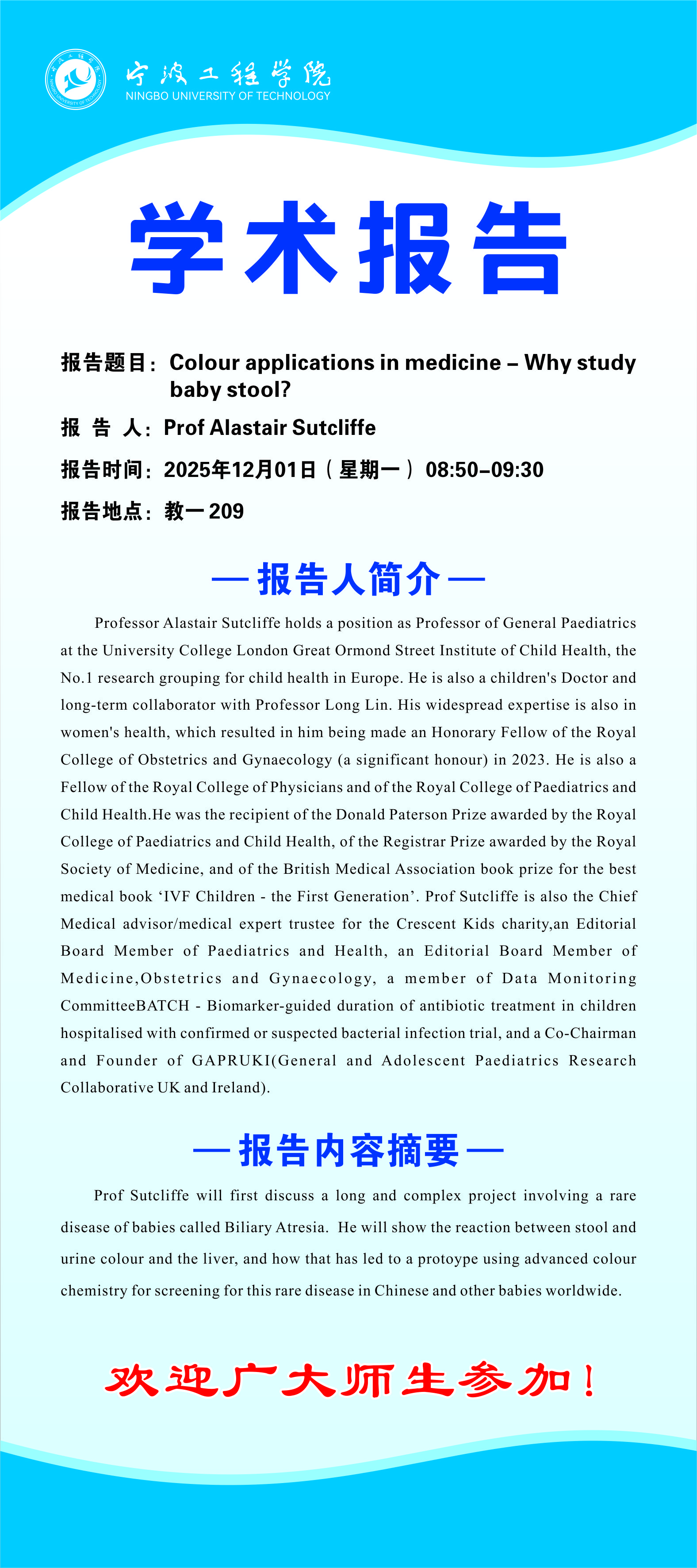 学术报告:Colour applications in medicine - Why study baby stool?